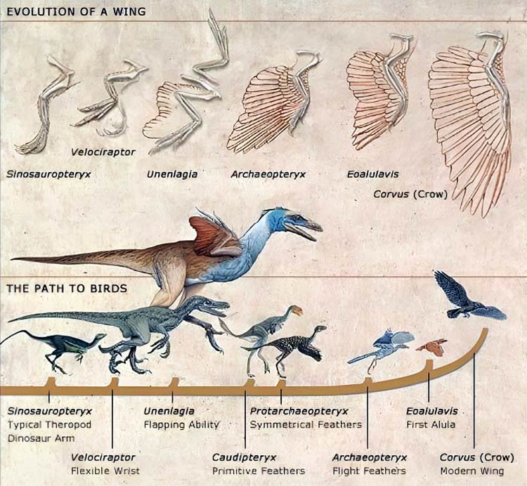 Feathers evolved into functional use beyond display among different dinosaurs. 125 million years ago, the symmetrical feathers on Caudipteryx and Protarchaeopteryx were for display.