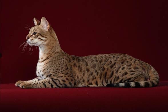 A cross-breed of a domestic cat and a serval has resulted in the creation of friendly savannah cats. Unlike their home cousins, these cats like water. Their price, as you can easily guess, is slightly higher than that of their typical domestic friends – it ranges from 4 to 10 thousand dollars.
