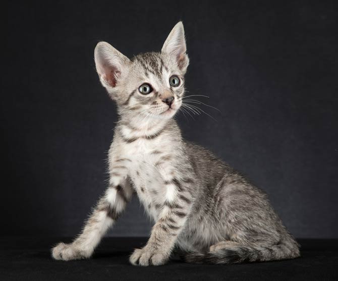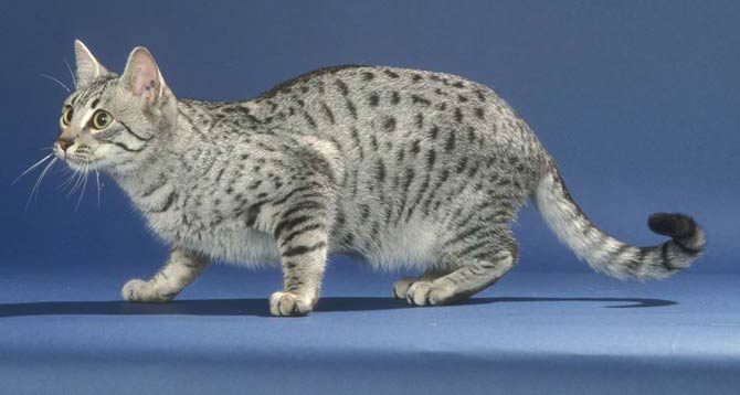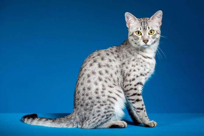 In addition to the three color variations mentioned, Egyptian Mau can also have black, silver-blue, blue mottled or smoky blue. However, these shades are not accepted for show cats.