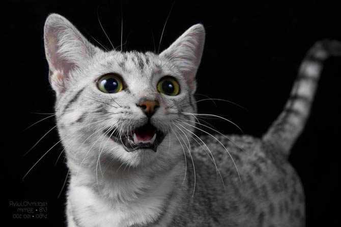 Egyptian Mau makes it very clear that he is in a great mood. It emits various sounds that have a pleasant effect on the owner’s ears. Some of them are almost like a chuckle. The happy Mau moves his tail and kneads the ground with his paws. He feels best with the family to which he devotes himself completely. He also loves games related to chasing and hunting.