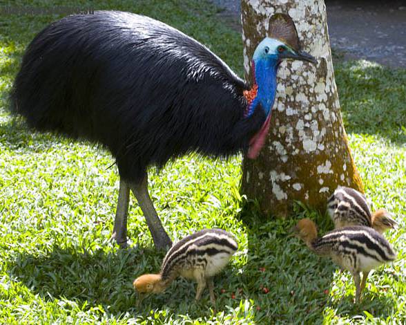 All three species of this flightless bird live in New Guinea, nearby islands and in northeastern Australia (Queen Island). The most numerous species is the double-wattled cassowary (Casuarius casuarius), which is the second heaviest bird after the red-necked ostrich (Struthio camelus) and at the same time, the third biggest bird after the common emu (Dromaiidae).