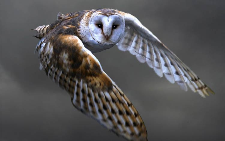 - Owls are almost completely silent in flight, thanks to the specialized feathers on their wings that break up the sound of air moving over their wings.