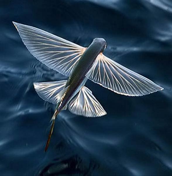 Probably many people ask the question: “Why does the fish have wings?” This rare gift is a natural defensive mechanism against water and flying predators. When the flying fish feels threatened in the water, it pops out of the water, spreading the breast and tail fins, overcomes several meters, then the fish folds in and returns underwater or bounces off its surface to extend the flight or change direction.