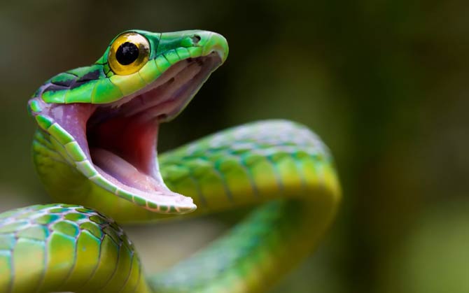 The snakes are very fast. They move efficiently and, while hunting prey, they act by surprise, opening their jaws wide and swallowing it whole. Even if the prey is much larger, they easily absorb it thanks to a mobile skull and subcutaneous blood vessels arranged in a rhombus.