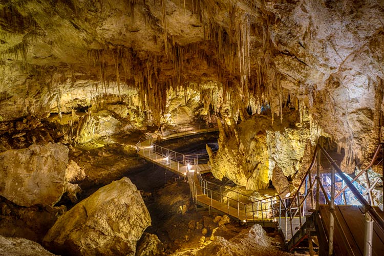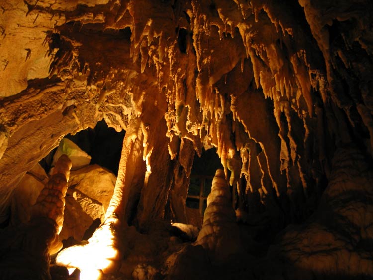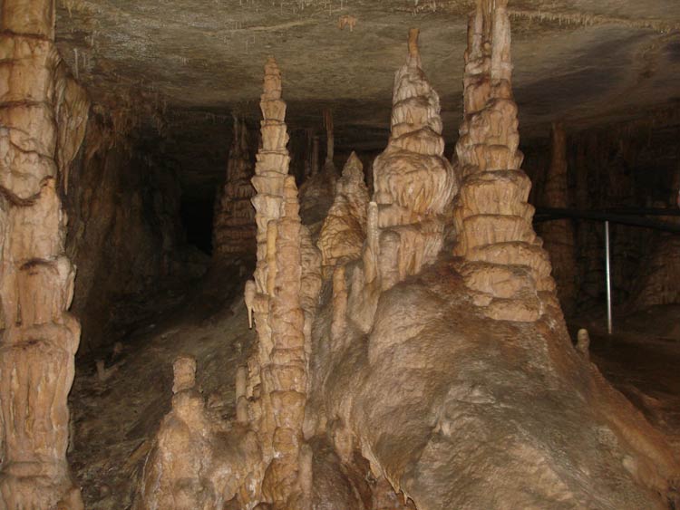 One of the most striking features of the caves is their size. Some of the chambers are over 100 feet (30 meters) tall, with ceilings that tower above visitors like the vaulted arches of a cathedral. The caves are also rich in unique formations, such as stalactites (icicles of rock that hang from the ceiling) and stalagmites (conical pillars of rock that rise from the floor), as well as other mineral deposits like flowstone and rimstone dams.
