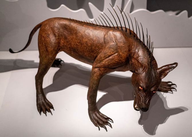 It is a reptile-like animal with greenish-gray skin, sharp spines, and spines on its back. Its height is 90 – 120 cm, and it moves on its hind legs, similar to a kangaroo. Its mouth is similar to that of a dog or cat, and a forked tongue protrudes from its mouth. It gives off a sulfur smell that is pungent and unpleasant. The second version is an animal from the canine family, without hair, with a mane on its back. There is also writing about kangaroos with wings.