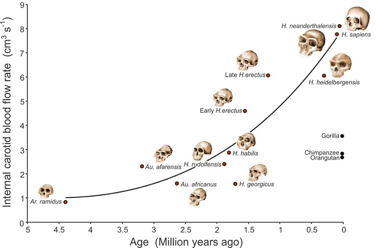 The first hominids, such as australopithecines, which lived about 4 million years ago, had relatively small brains, with a volume of about 400-500 cm³ (24.4-30.5 in³). Although their brains were larger than those of modern apes, they were significantly smaller than the brains of modern humans.