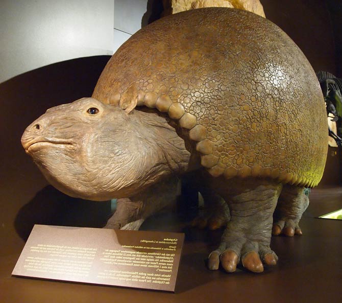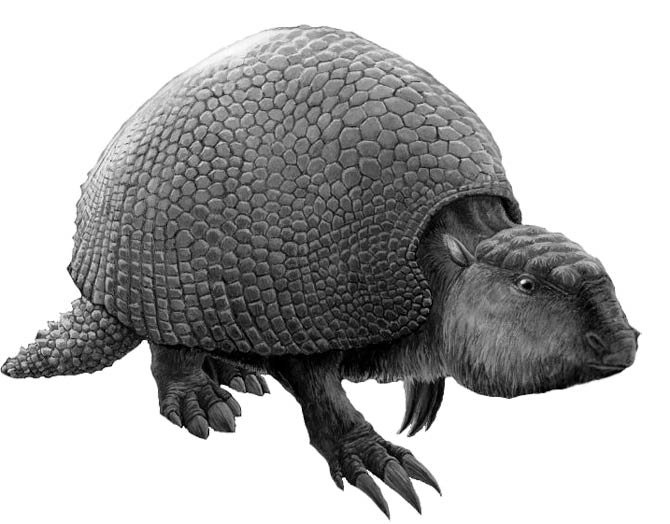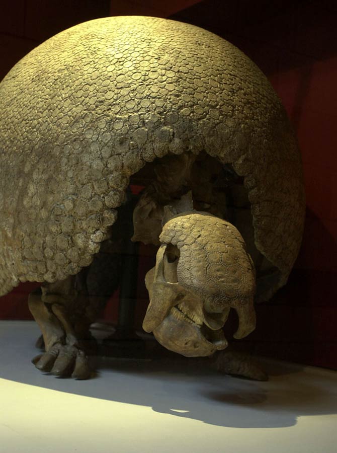 The armor plates found were arranged in double or triple rows on the sides, front and rear of the armor. Similar shields covered the head and tail. In 2000, it was discovered that several species of the genus Glyptodon also had osteoderms on their mouths. This would indicate the period in which they lived on Earth – the Pleistocene. This was a time South America joined North America through a land isthmus. A new bridge between continents initiated great migrations of species, including predators.