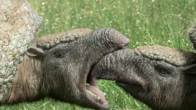 - If these mammals lived in dense forests, their eyesight could be very poor. Thus, a form of defense against a predator was the size and very hard armor that no teeth could penetrate.