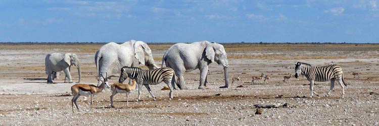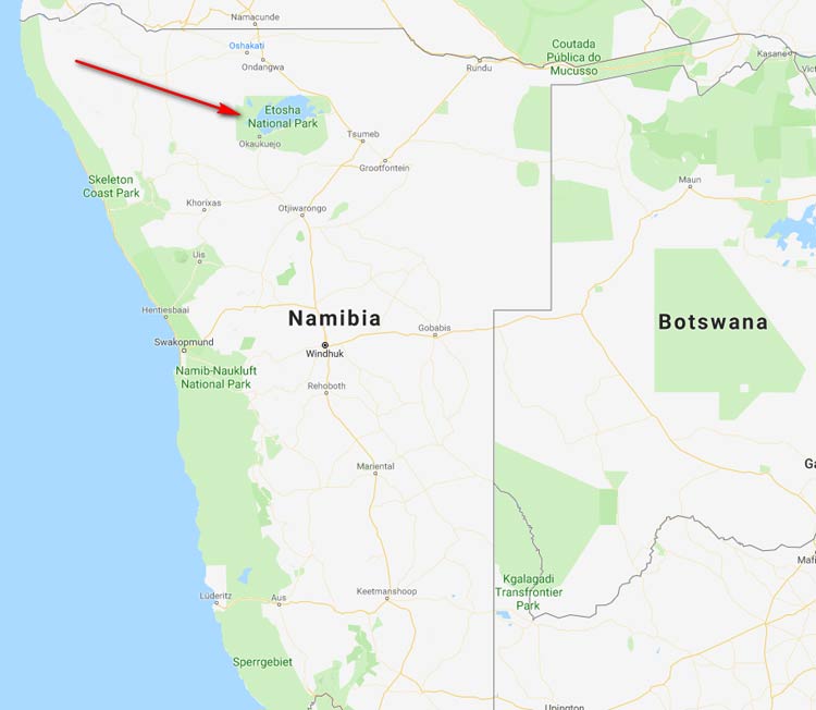 Etosha National Park is located in northern Namibia, and can be reached by several means of transportation: