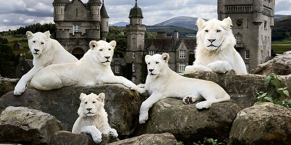 - West Midland Safari Park, England – in 2004, 4 white individuals (1 male and 3 females) were brought to West Midland Safari Park in England. They have been at the same time the only white lions in Great Britain. In 2008, one of the females gave birth to 4 white cubs. At the end of 2012, it was announced that the quadruplets were sold to a Japanese circus, although they were sent to a businessman, Jim Clubb, the owner of a zoo in Chipping Norton in Oxfordshire.