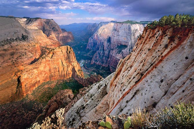 Few people know that there is an equally interesting place with unusual rock formations near the Grand Canyon. The Zion National Park, in question, is an area where you can find picturesque narrow labyrinths in gorges, hidden waterfalls with crystal clear water and most importantly admire the varied geomorphology of the place. High plateaus, steep rimrocks and sandstone cliffs built over thousands of years by nature are the hallmarks of the Zion National Park.