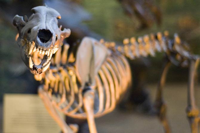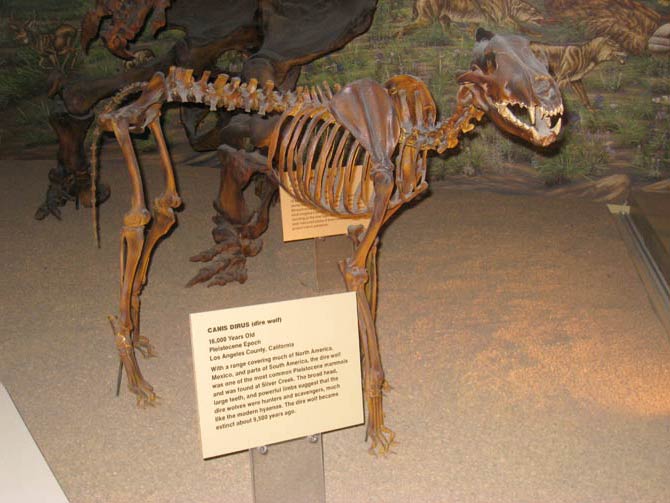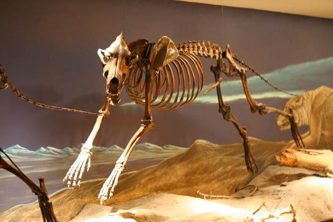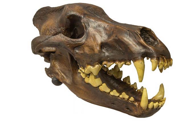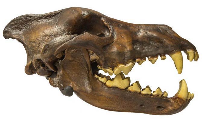 This large representative of the genus Canis / Aenocyon lived centuries ago in the areas of North and South America. It was a close relative of the gray wolf, with which it formed one ecological niche at one point. It was a strong and dangerous predator, but not indestructible. This is evidenced by the fact that today we will not meet it anywhere else outside the museum.