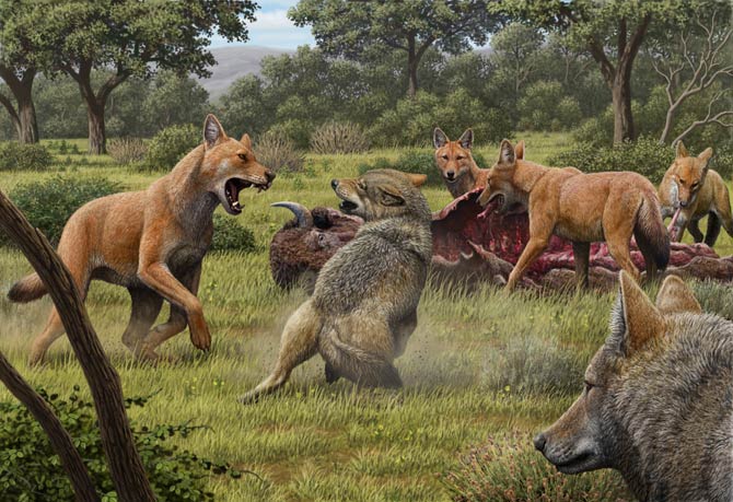 An international team sequenced the DNA from five dire wolf fossils from Wyoming, Idaho, Ohio, and Tennessee, dated to over 50,000 years old. Their analyses showed that dire wolves and grey wolves were, in fact, very distant cousins.