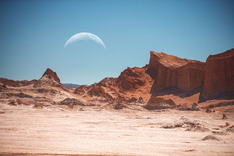 Looking at the Atacama, it is easy to understand why NASA scientists chose it as a testing ground for Martian rovers. The reddish, dusty soil, the lack of vegetation, and the extreme dryness make the desert look like a landscape from another planet. The soil of the Atacama is rich in chemical compounds, such as perchlorates, which are also found on Mars, and its surface remains almost untouched by water erosion.