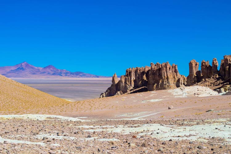 - Volcanic cones, like Licancabur, rise to 5,916 meters (19,409 feet), towering over the desert.