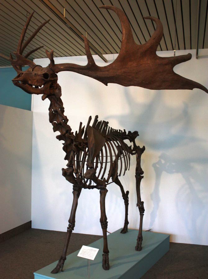 One hypothesis is that the antlers became larger and larger under the influence of sexual selection – males used them in fighting for access to females. At one point, it became so uncomfortable (for example, the inability to tilt and twist the head) that the deer were unable to live a normal life, with the consequent extinction of the deer.