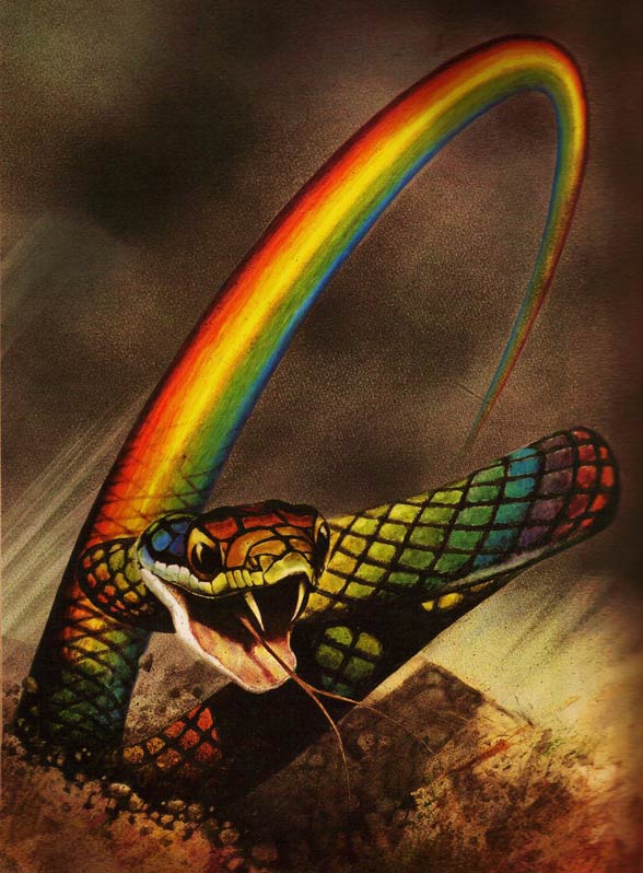 A group of researchers suggests that the relationship between the serpent and the rainbow symbolizes the cycle of the seasons and the importance of water in human life. When a rainbow appears in the sky, the snake moves from one waterhole to the other, which neatly explains the reason for not being able to suck some waters during periods of drought. Aborigines see in him an important deity, possessing the great power of a god-animator, which is indicated by a close relationship with water. However, it may manifest bad, destructive force.