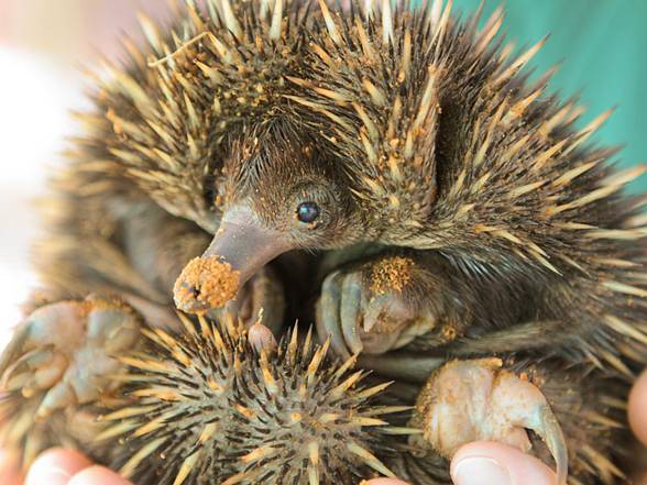 Because the echidna’s neck is completely invisible, the animal resembles a ball – its body and head seem to be joined together.