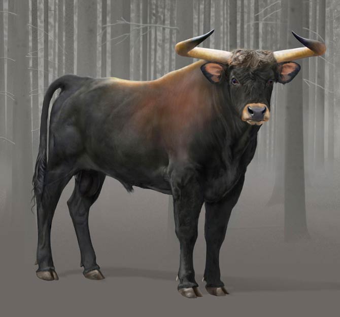 In order to realize the power of the aurochs and the strength that Ursus had to face, we recommend taking a look at the gaur (Bos gaurus) – it is the most powerful bull in the world, some individuals can reach 1500 kg of weight, similar to the biggest aurochs.
