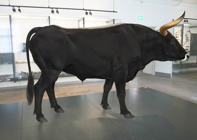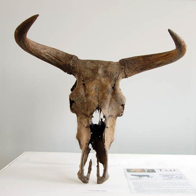- Bos primigenius primigenius – inhabited the steppes and taigas of Europe, Siberia and Central Asia. It was domesticated in the Middle East around the 6th millennium BC. Excessive hunting resulted in a privilege of kings and nobility that made the animal extinct in 1627. The last of this aurochs species was a female – she died of natural causes.