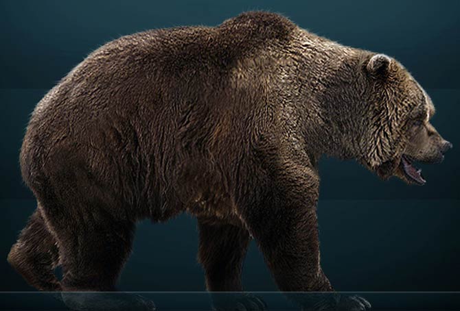 He had massive limbs, and his body resembled modern European bears. It also reached sizes similar to them. It was comparable in size to the largest relatives living today; males could weigh 400-500 kg, females by about 50% less (225-250 kg). The standing height was in the range of 2.7-3.5 m, therefore it was about 30% longer than the average brown bear.