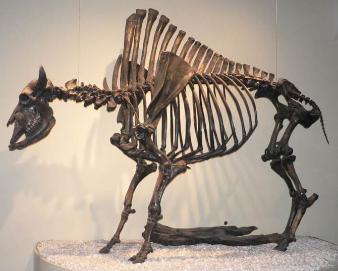 In North America, steppe bison have split into several evolutionary branches. One of them was the giant Bison latifrons, which lived in small groups in the forests and became extinct about 20 thousand years ago. Another branch was the much smaller Bison antiquus, which was better adapted to life on the prairie and lived in huge herds. In the early Holocene, however, it was supplanted by the species Bison antiquus occidentalis, which became the ancestor of the present American bison.