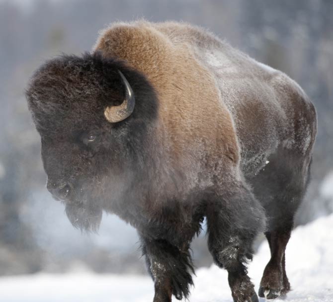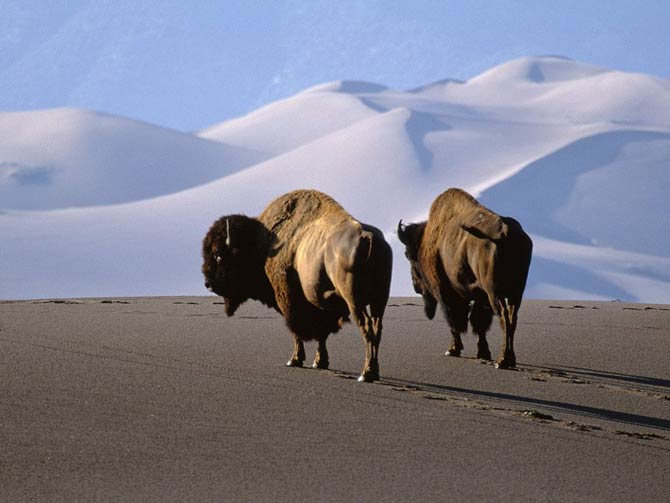 The bison, otherwise known as the American bison, is the cousin of European bison. It occurs in the prairies of North America. Before the arrival of the white man, buffalo were found almost everywhere in the North American continent. In the 19th century, mass hunting led to an almost complete extermination of these animals. The reason was the precious skins – the white hunters killed them without restraint. Those bisons, which did not fall victim to greed, found refuge in nature reserves (e.g. Yellowstone) and live there to this day.