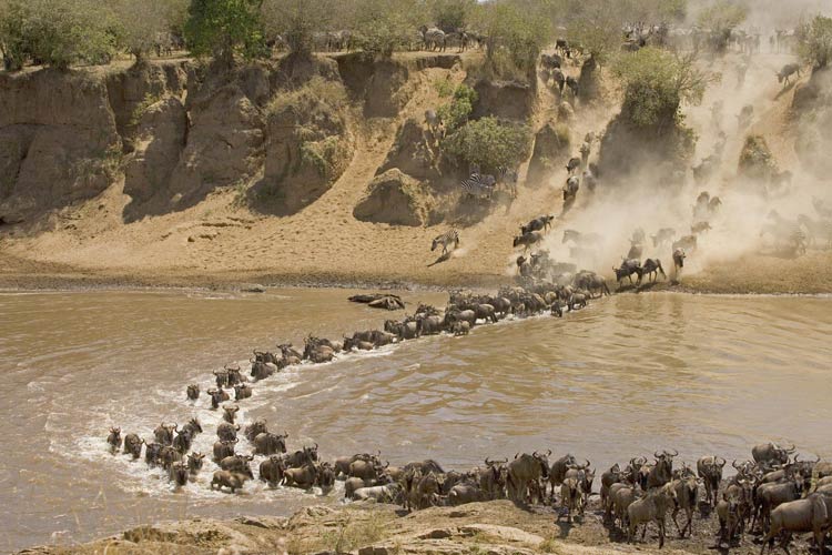 A classic example is the wildebeest migration in Africa. Over 1.5 million wildebeest, alongside zebras and gazelles, move together in search of greener pastures. When crossing rivers, some fall prey to crocodiles, but by sticking together, they increase their chances of survival.