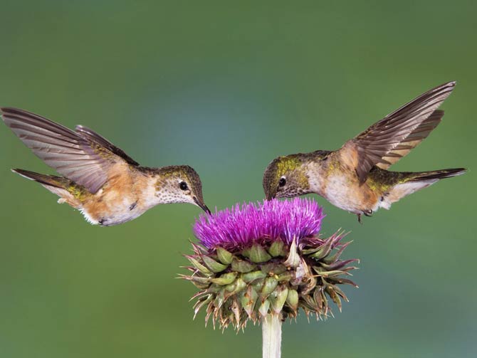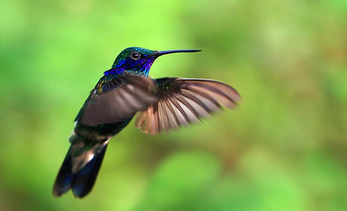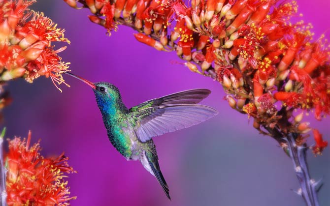 Hummingbirds are the smallest birds that live on Earth; due to their metallic shiny plumage, they are often called flying gems. Most of the 368 known species inhabit the tropics of the Americas, although they are also found in colder zones. Some hummingbirds have adapted to arid areas, where the vegetation cover is mainly made up of flowering cacti, while others are found only in green fields and arable lands.