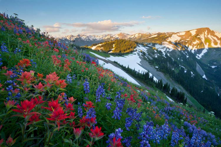 The flora of Olympic National Park is diverse and abundant, with a variety of plant communities found throughout the park. The park’s forests are dominated by tall conifers such as Sitka spruce, Western hemlock, Douglas fir, and Western red cedar. These trees create a canopy that shades the forest floor, creating a moist and cool environment that supports an understory of shrubs, ferns, and wildflowers.