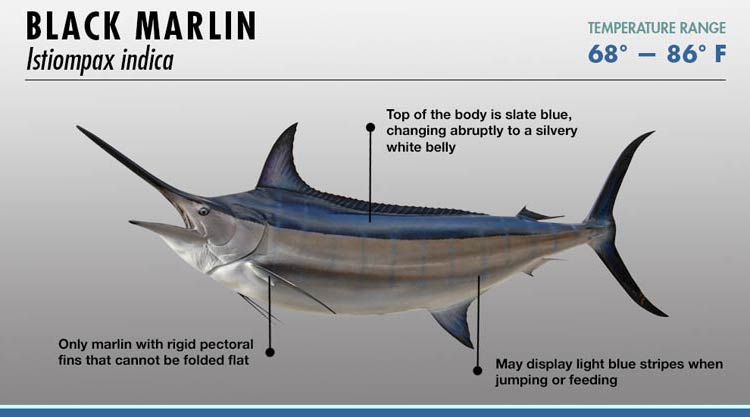 The black marlin holds the title of the fastest fish in the world. It belongs to the swordfish family and is mainly found in the Indian and Pacific Oceans. Its favorite food is small squid, but it also preys on large crabs.