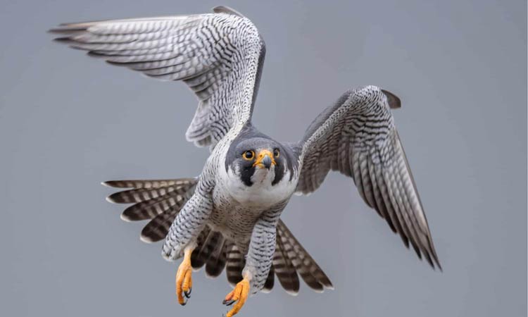 This is the fastest animal in the world: the peregrine falcon. It is also one of the most widespread birds in the world, colonising all continents except Antarctica – and there are primarily all types of mountainous landscapes and cliffs.