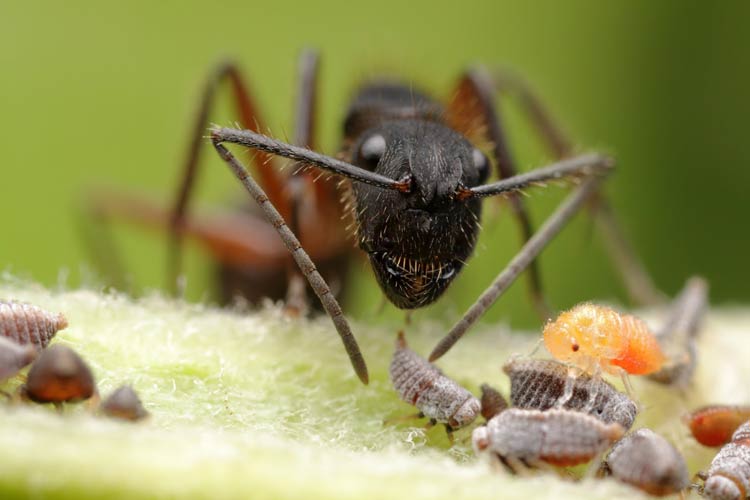 - Certain types of ants have a symbiotic relationship with aphids, protecting them in exchange for the sweet honeydew they produce.