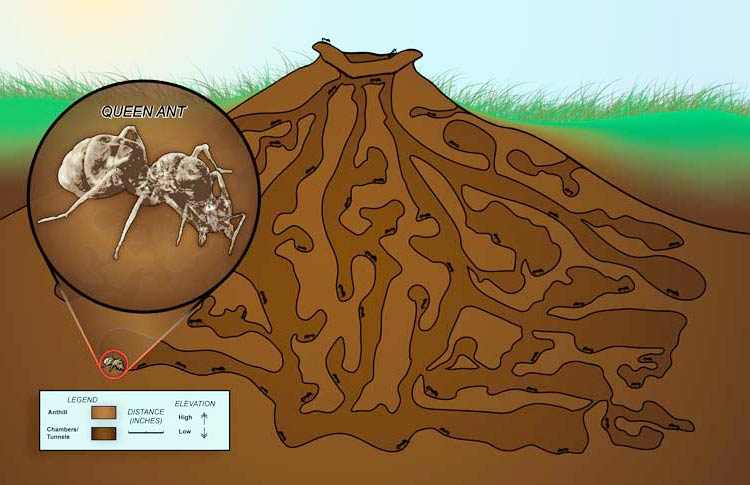Q: How do ants build their nests?