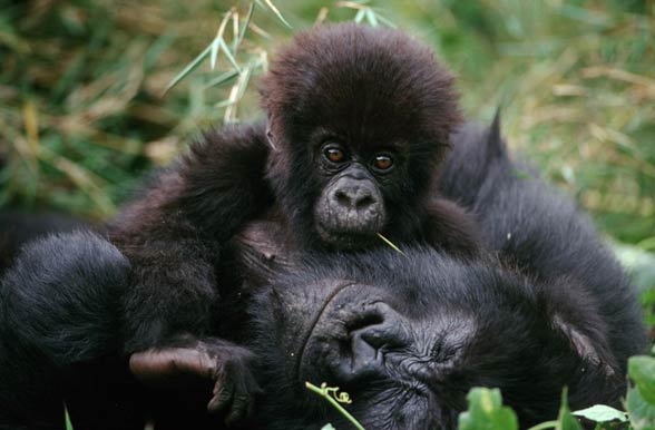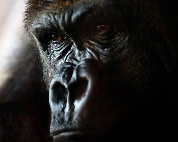 Eastern gorillas are darker than their western relatives; the mountain gorilla is the darkest and at the same time have the thickest fur.