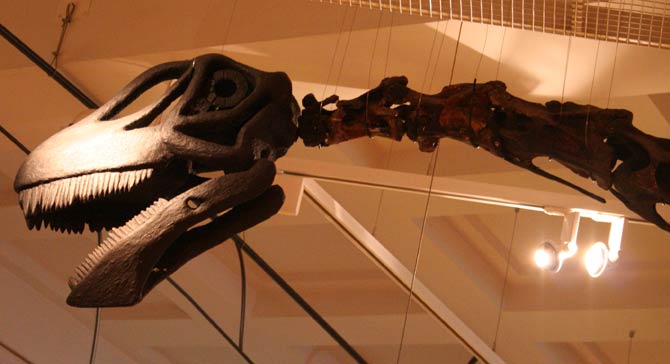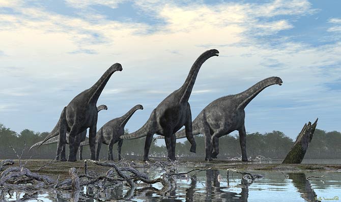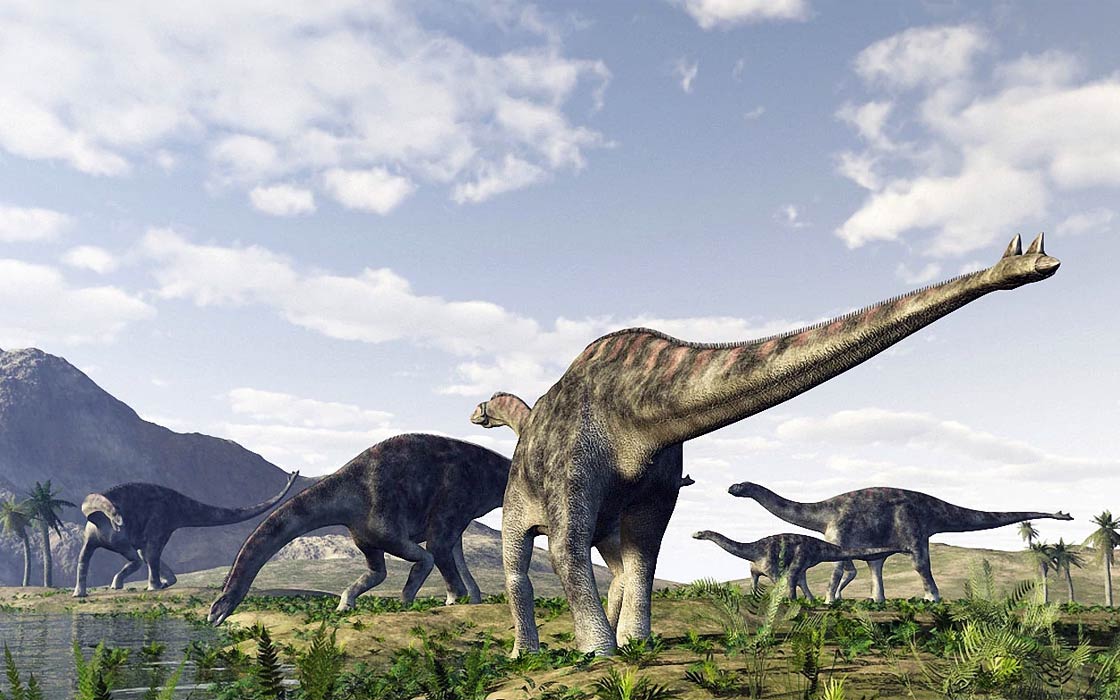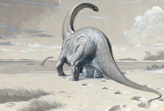 This huge herbivorous dinosaur was as long as whales. When it was named Cetiosaurus (“the whale lizard”) in 1841, it was the largest known land animal. It had a moderately long neck, a bulky body, and a relatively short tail. The first indication that giant dinosaurs once walked on the Earth was the caudal vertebrae of a Cetiosaurus discovered in Oxfordshire in 1809.