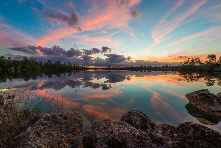 The mangroves in the park form a critical coastal ecosystem and support many crucial bird species. The park’s gentle and shallow waterways support sawgrass marshes and tree islands. The tree islands are habitats for several rare and threatened species, such as the Key Largo cotton mouse. The pinelands, containing slash pine and saw palmetto, are a fire-dependent ecosystem that requires regular fires to maintain the community structure. The flora of Everglades National Park serves as an essential part of the park’s delicate ecosystem. Protecting the diverse plant communities is vital to the survival of the Everglades region.