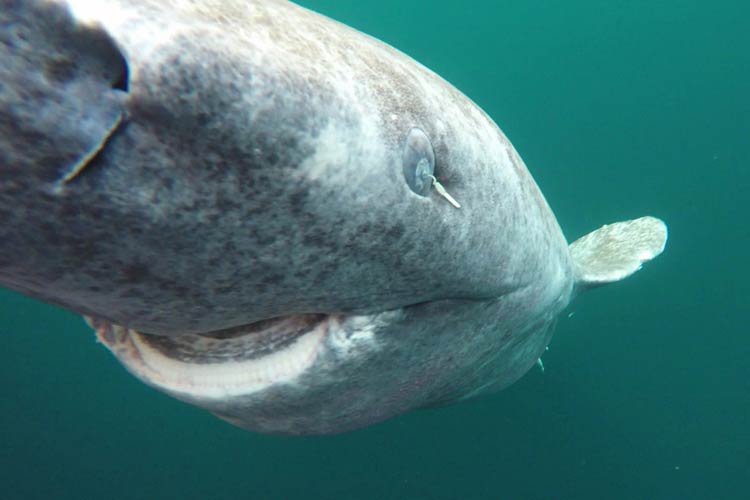 Because these copepods glow in the dark, the Greenland shark takes on a demonic appearance when its eyes emit a greenish glow in the ocean depths. This also has a beneficial side – small fish and other marine creatures, attracted by the glow, become the shark’s meal.