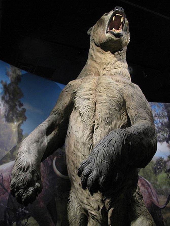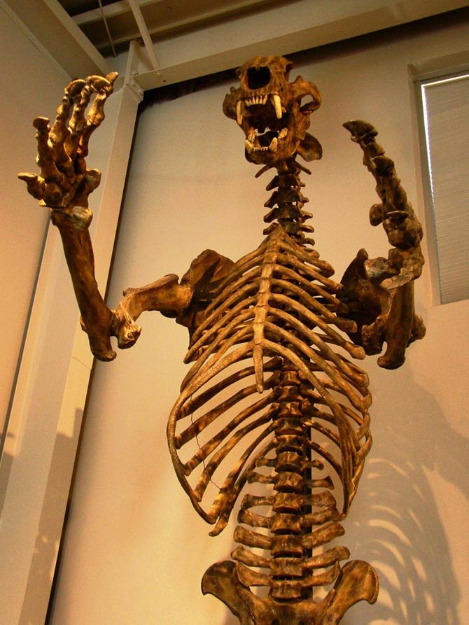 In truth, it was Arctotherium angustidens who came to South America from North America to begin its reign there – apparently, North America was too tight for it and the competition (lions, smilodons, bears, dire wolves) was too great. Interestingly, unlike its North American cousin, it tended to shrink in size.
