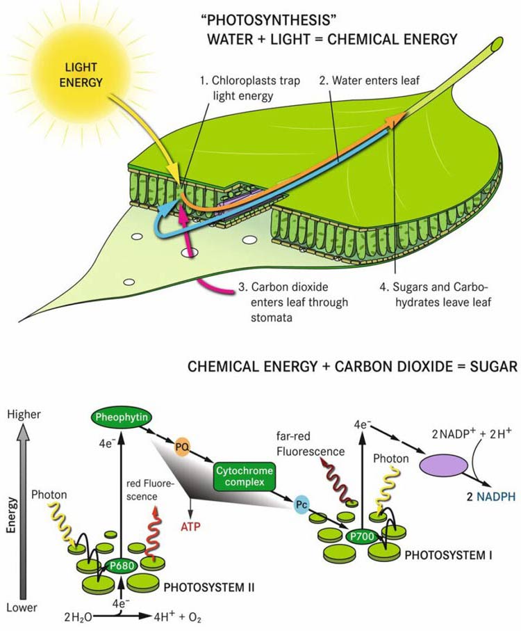 To keep the system running, the plant splits water molecules (H₂O) in a process called photolysis. This releases electrons to replace the ones chlorophyll lost, along with protons (H⁺) and oxygen gas (O₂). That oxygen is the “waste product” we animals depend on to breathe – about 21% of Earth’s atmosphere comes from this step.
