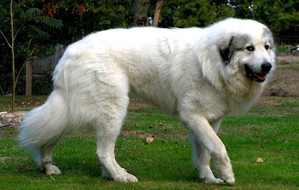 Due to its purpose, the Pyrenean Mountain Dog is adapted to difficult weather conditions. The coat consists of two layers: a long, close-fitting, straight or slightly wavy, thick topcoat and a soft, feathery undercoat.