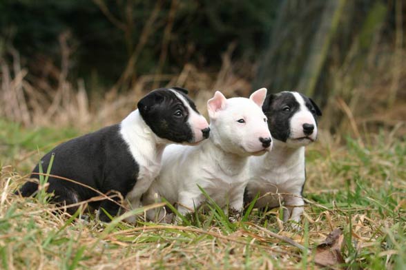 Bull Terriers have a strong prey instinct and, like any strong dog breed, when unduly challenged may cause injury or death to other animals, especially cats. That said, puppies brought up with cats and other animals get on well with the animals they know. Early socialization will ensure that the dogs will get along with other dogs and animals.