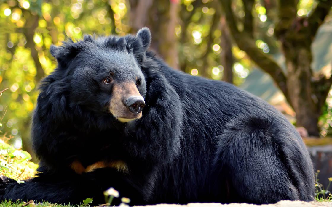 Asiatic black bear, moon bear, white-chested bear (Ursus thibetanus) The white V-shaped patch on the chest may bring to mind…