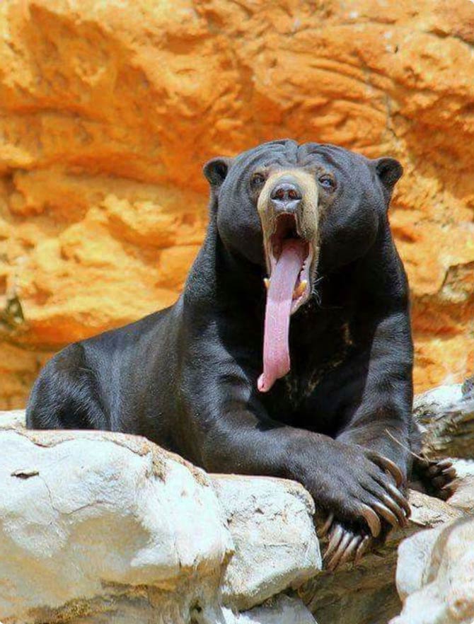 - Sun bear has the longest tongue among all bear species, it measures 20-25 cm (8–10 in) and serves as a “trap” for insects and honey.
