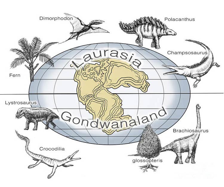 The separation of Laurasia and Gondwana led to divergent evolution of dinosaurs on the two continents. In Laurasia, iconic groups such as the ancestors of tyrannosaurs and early ceratopsians Meanwhile, Gondwana was dominated by other types of large predatory theropods (like abelisaurids) and gigantic titanosaur sauropods. - Laurasia as a “Coal Factory”