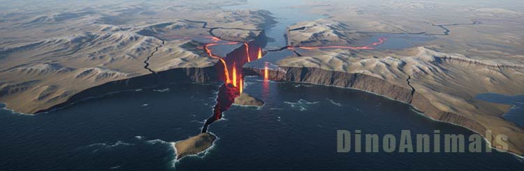 The most significant and spectacular event in Laurasia’s breakup was the opening of the Atlantic Ocean. This process began around 180 million years ago (in the Jurassic period), when the first rifts started forming between present-day North America and Europe (part of Eurasia). Initially, narrow oceanic basins formed, which gradually widened over time. The fully developed North Atlantic began to clearly separate these landmasses approximately 56 million years ago, during the Paleogene period. The formation of the Mid-Atlantic Ridge, where magma continuously rises to the surface, is direct evidence of this ongoing plate separation.