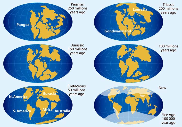 Peripheral water bodies and the Tethys Ocean also widened. Additional rift valleys emerged, leading to the creation and expansion of more water basins. Eventually, South America broke away from Africa, Europe detached from North America, and the Tethys Ocean was poised to permanently separate the Americas. All these movements were the genesis of the continental configuration we see on our globe today.
