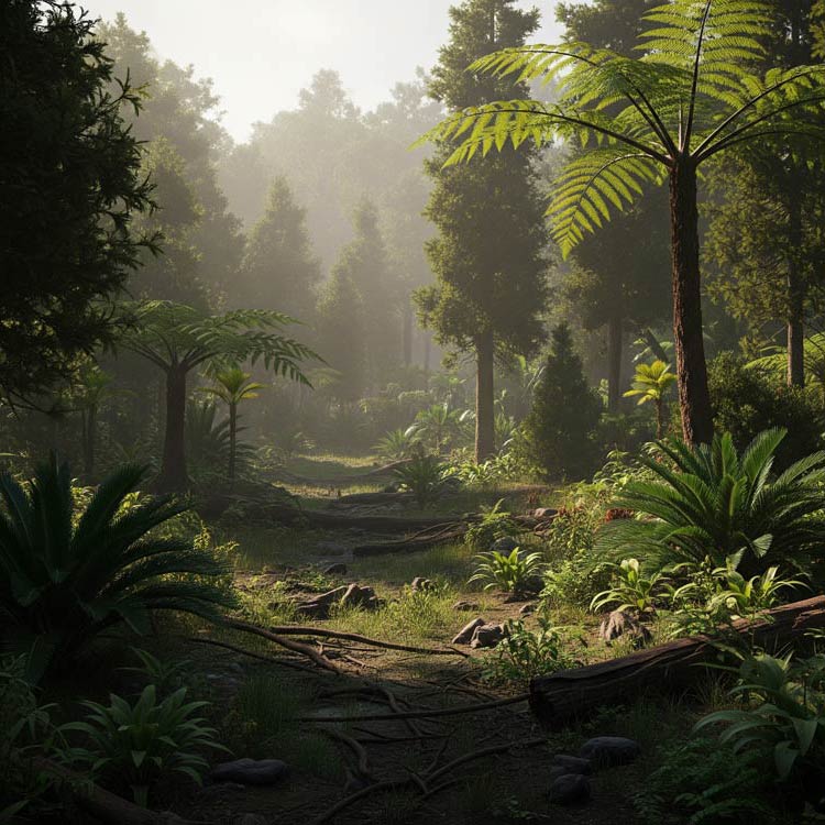 Additionally, horsetails (Equisetaceae) and clubmosses (Lycopodiaceae) were common, thriving in more humid or swampy areas. Unlike modern forests, the Triassic flora lacked flowering plants (Angiospermae), which would only emerge much later in the Cretaceous Period. The prevalence of gymnosperms meant that the primary food sources for many herbivorous dinosaurs were seeds, cones, and tough, fibrous leaves, shaping their digestive systems and feeding behaviors. This ancient vegetation laid the groundwork for the more complex ecosystems that would flourish in the subsequent Jurassic and Cretaceous periods.
