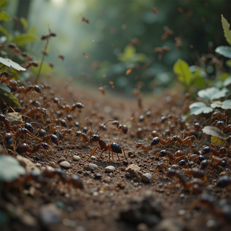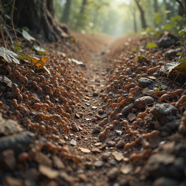 Imagine a tropical forest, silence broken by the rustling of leaves, until suddenly the ground begins to tremble. A wave is approaching – not of water, but of millions of tiny legs, mandibles, and antennae. It’s the marabunta, a natural phenomenon that has ignited human imagination for centuries. In movies, we see it as a ruthless force devouring everything in its path – from chickens to unlucky heroes fleeing in panic (e.g., Indiana Jones and the Kingdom of the Crystal Skull). But should we really be afraid of it? Let’s delve into the world of army ants to separate scientific facts from fiction and understand what lies behind this living, black river.